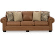 Corner-blocked frame;Attached back and loose seat cushions;High-resiliency foam cushions wrapped in thick poly fiber;Accent pillows included;Pillows with feather-fiber blend;Genuine leather typically covers inside areas such as the back, seat and arm cushions; skillfully matched faux leather covers the remaining areas;Top-grain leather simulating a wax oil pullup with crackle effect;Lightly buffed and embossed with clear protective finish to prevent scratches;Due to its natural origin, real leather can show individual characteristics such as healed scars, growth marks, grain variation and shade variation;Natural variations make each hide unique and do not detract from the wearing qualities of leather;Decorative turn leg;Platform foundation system resists sagging 3x better than spring system after 20,000 testing cycles by providing more even support;Smooth platform foundation maintains tight, wrinkle-free look without dips or sags that can occur over time with sinuous spring foundations,Sofa