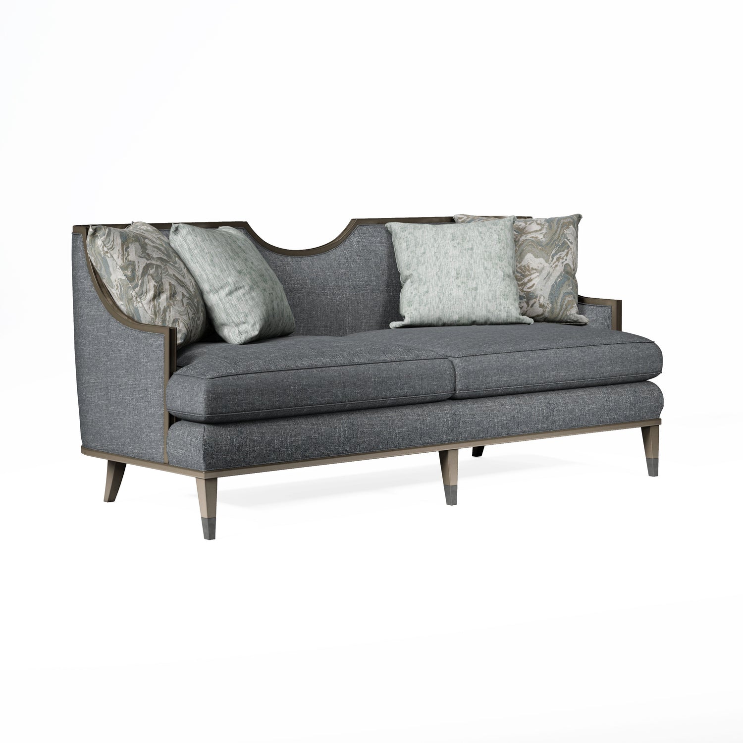 | Features | Exposed wood frame in a Mica finish features concave back rail, Tight back design, Sineous spring seat construction with two (2) removable Luxe Classic seat cushions, Upholstered in a lichen blue polyester fabric, Includes two (2) 20-in x 20-in and two (2) 21-in x 21-in blend-down toss pillows, Front legs feature pewter finished metal ferrules |