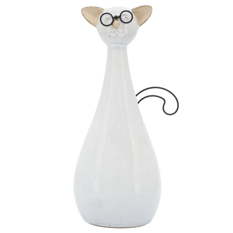 CER, 10"H CHUBBY CAT W/ GLASSES, BEIGE