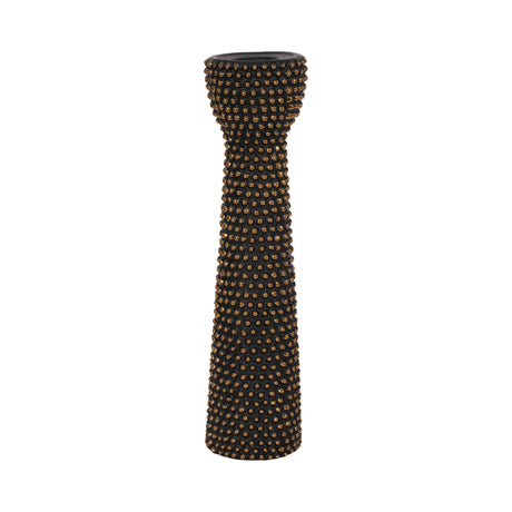 CERAMIC 15"H VASE W/ GOLD LID, WHITE/BLACK