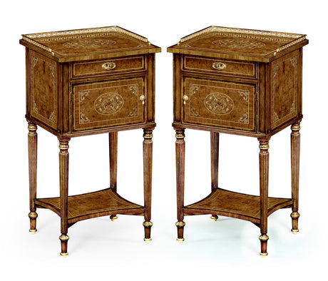 Duchess Collection - Pair of Burl & Mother of Pearl Bedside Cabinets with Undertier