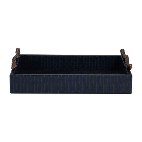 FAUX LEATHER, 16" COPENHAGEN TRAY, NAVY/GOLD