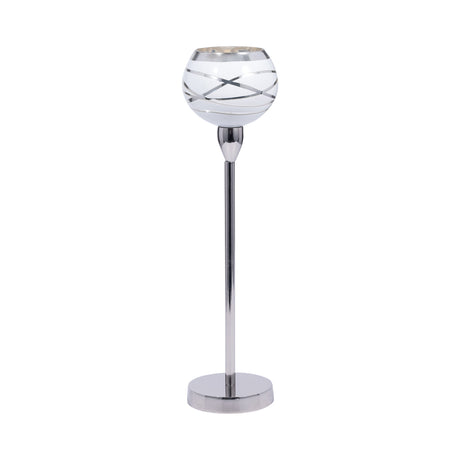 GLASS, 17" VASE W/ METAL BASE STONE ACCENT, PEARL