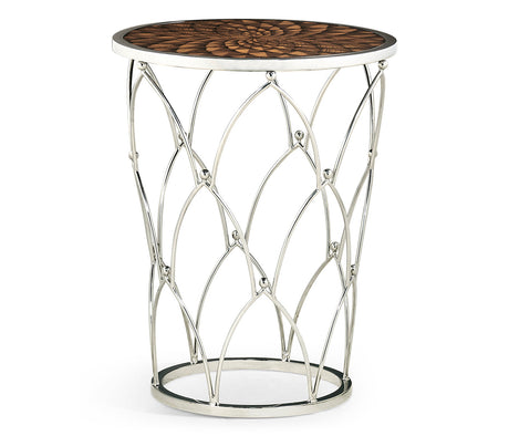 JC Modern - Icarus Collection - Feather Inlay & Stainless Steel Round Side Table