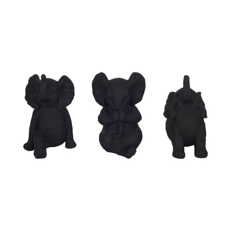 RESIN S/3 6" STONE LOOK YOGA ELEPHANT, ANTIQUE BLK