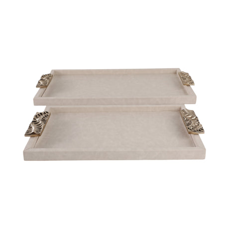 S/2 17/20halofax Tan Suede Selenite Hardware Trays
