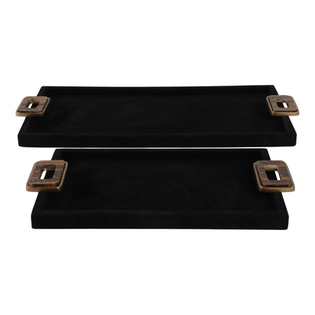 S/2 14/18"L, WOOD-LEATHER TRAYS, BLUE/ OMBRE