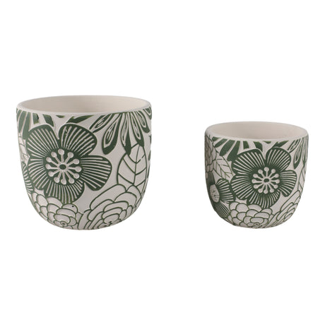 S/2 6/8" Flower & Vine Chinoiserie Planters, Green