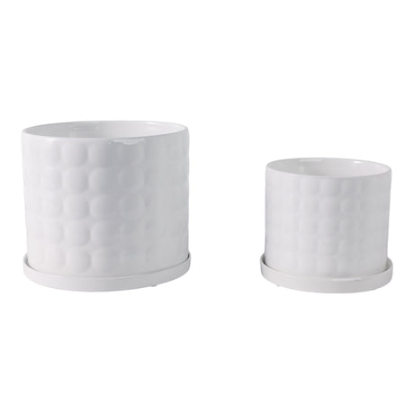 S/2 6/8" Iridescent Bravais Footed Planters, Ivory