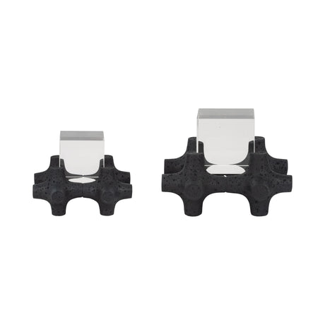S/2 6/8" BARWA OBJECTS WITH CRYSTAL CUBES, BLACK
