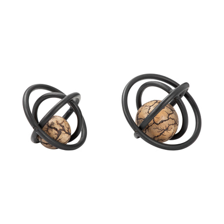S/2 8" Aracar Statuary With Crystal Sphere, Bronze