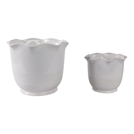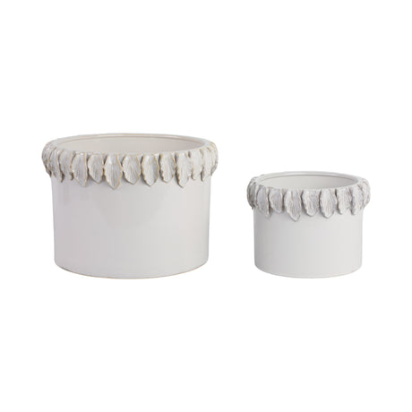 S/2 7/10" FLORAL APPLIQUE PLANTER, WHITE