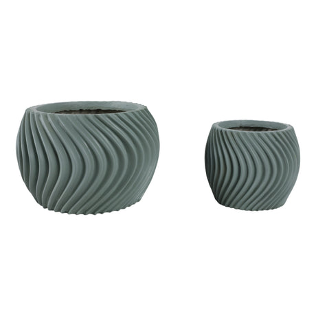 S/2 8/12" Curvy Lines Rounded Planter, Sage Green
