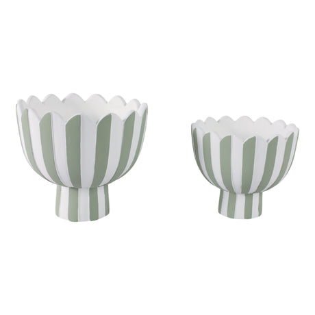 S/2 7/9" Scallop Edge Striped Planters, Green/whit