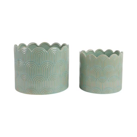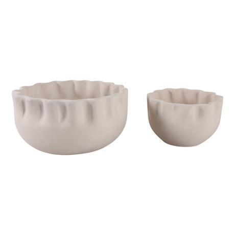 S/2 9/12" ROUND WAVY EDGE PLANTERS, WHITE