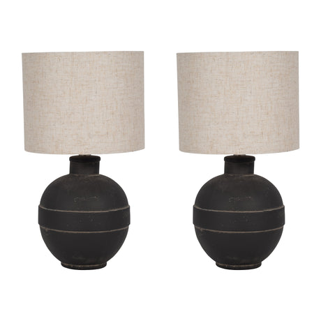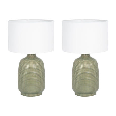 S/2 Ceramic 23" Open Cut Out Table Lamp, White/tan