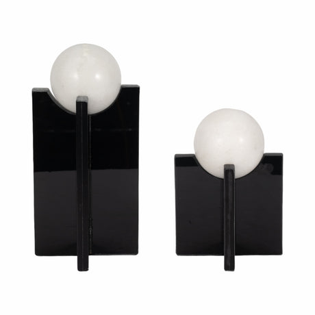 S/2 8/12" Elias Glass & Marble Sphere Statuary, Bl