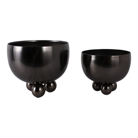 S/2 9/11" Metal Bowl Planter With Ball Feet, Black
