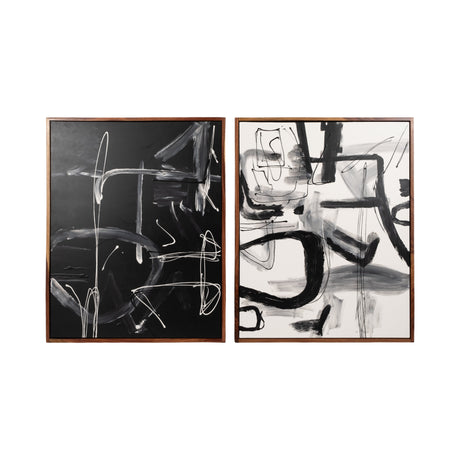 S/2 95x59 Hand Painted Contemporary Art, Black/wht