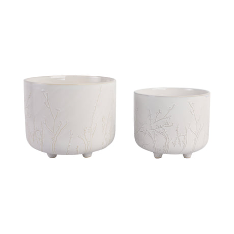 S/2 9/11" FLOWER BRANCHES PLANTERS, CREAM