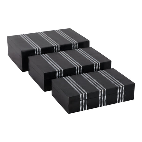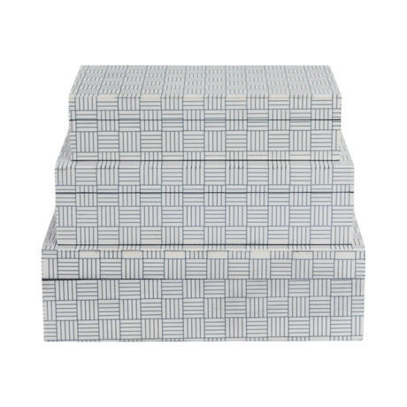S/3 10/11/12" Bold Lines Design Boxes, White/black