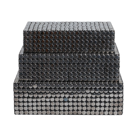 S/3 10/11/12" Triangle Pattern Boxes, Black/white