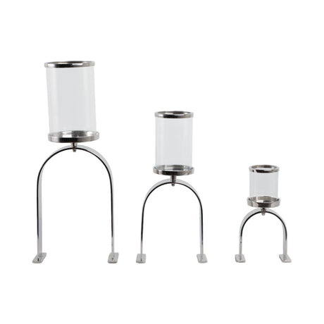 S/3 12/13/18"quincy Glss Bttles W/metal Flwr Toppr