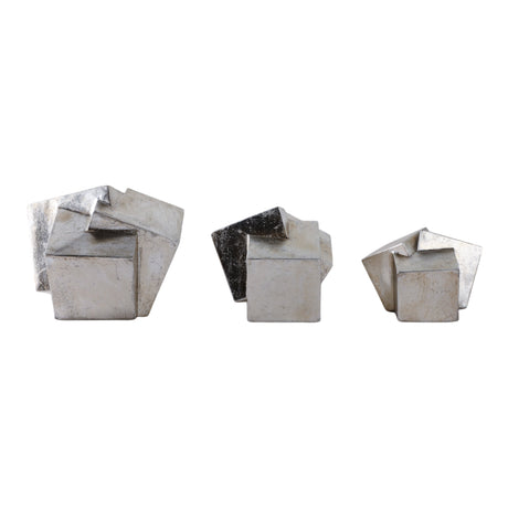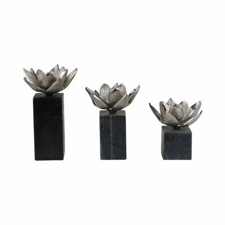S/3 6/7/10" DARBY SILVER FLOWER STATUARY WITH MARB