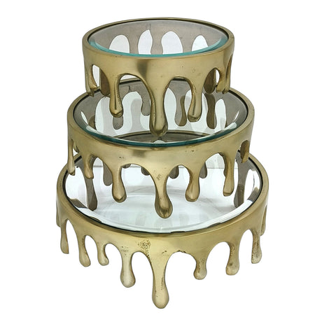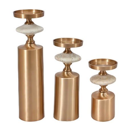 S/3 9/12/16" Leiden Champagne W/travertine Candle