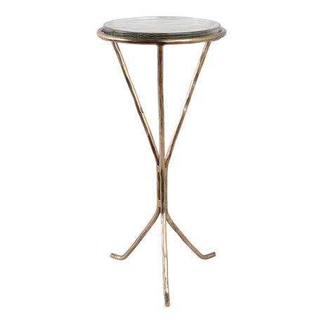 22x11" Recycled Glass Top Metal Drink Table, Gold