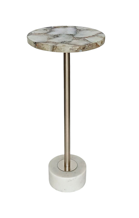23"grooved Base Accent Table Marbletop,white/go Kd