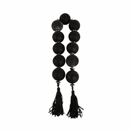56'' Renton Blk & Gold Glass Garland w Lthr Tassel