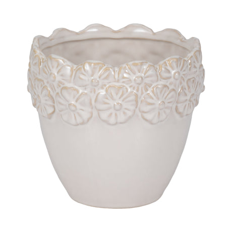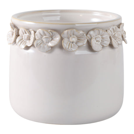 6" FLOWER BUNCHES APPLIQUE PLANTER, IVORY