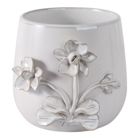 7" FLOWER BUNCHES APPLIQUE PLANTER, IVORY