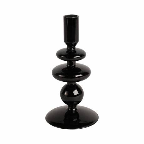 7" GLASS BUBBLE TAPER CANDLE HOLDER, BLACK