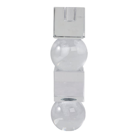8" Crystal Orbs & Blocks Taper Candleholder, Clear
