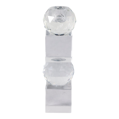 8" FACETED CRYSTAL ORBS CRYSTAL TAPERHOLDER, CLEAR