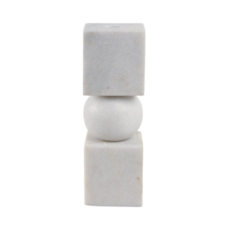9" STACKED OBJECTS TAPER HOLDER SAND GLAZE, BLACK