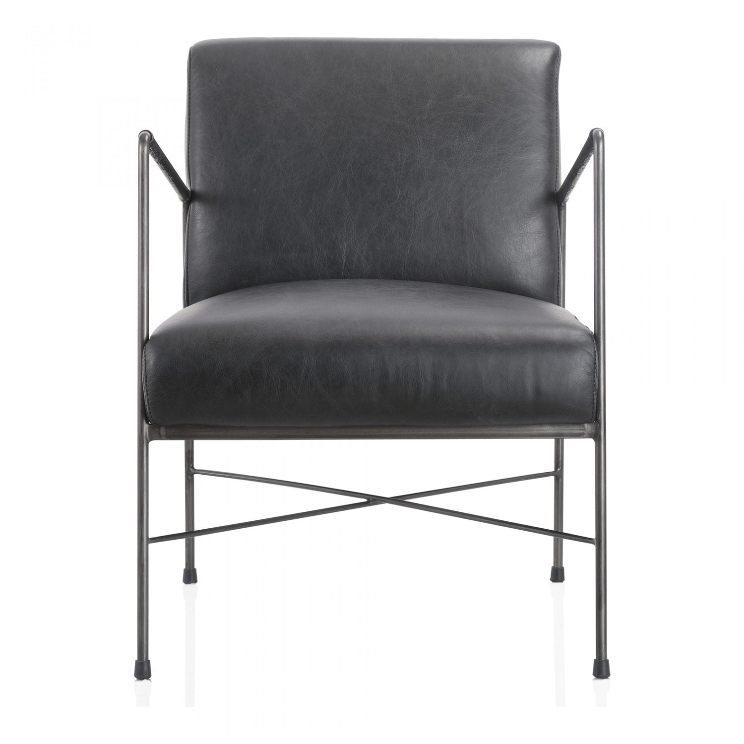 Accent your space with minimal, industrial design. A clean, comfortable addition to any decor, the Dagwood armchair ties together a moody palette with its dark top-grain leather and slim iron frame for a complete, modern look. In style with flexible intention to float from room to room, less is so clearly more with this occasional chair.