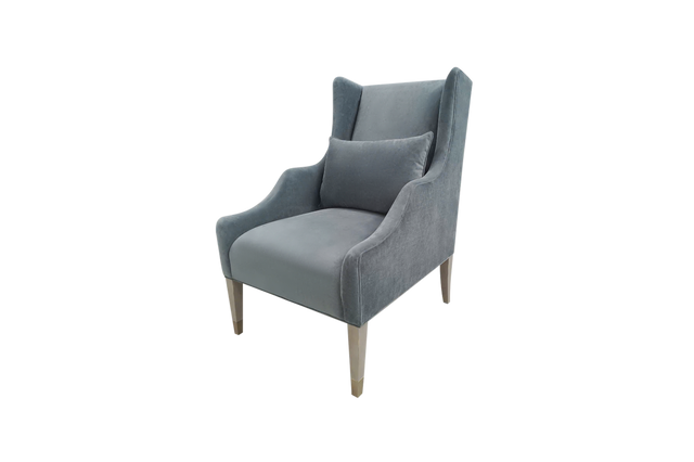 The HARPER Vintage Blue Wing Chair features a sophisticated design with a plush winged back and a comfortable cushion. Upholstered in a soft blue velvet, it adds elegance and style to any room while providing excellent support and comfort.