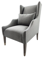 The HARPER Vintage Gray Wing Chair features an elegant design with a cozy winged back and a soft cushion. Its stylish gray fabric and sturdy legs make it a chic and comfortable addition to any space.