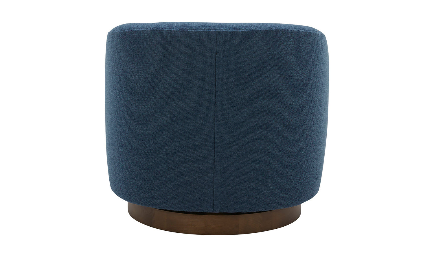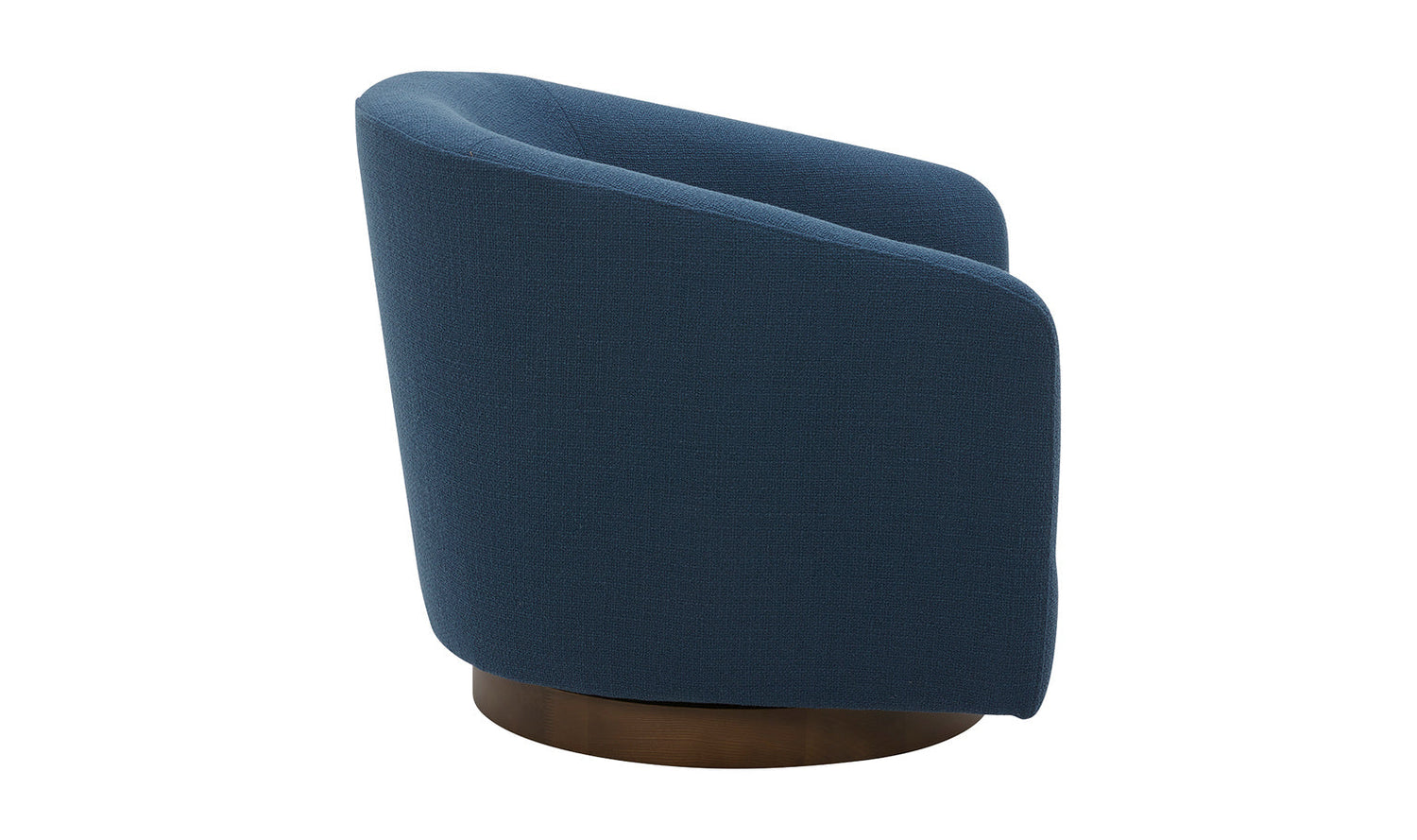 Deep blue and soulful. Calm and relaxed. The Oscy swivel chair is a cloud of comfort that brings airy energy and convenience into your living room with its 360° swivel, floating base design. Idyllic for a reading nook or as an accent chair, Oscy creates a chic retreat with softly textured fabric upholstery that looks fresh and keeps things cozy.