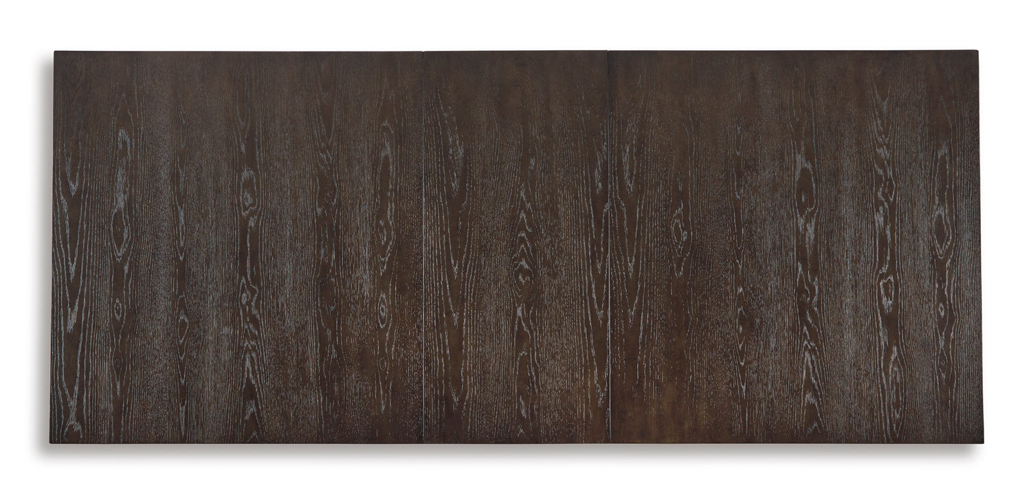 Dressed to thrill, the simply stunning Burkhaus dining table offers a high-design look at a down-to-earth price. Ultra sleek lines are accentuated with a dark waxy brown oak-tone finish that’s so easy on the eyes. Clean-lined and modern, the double pedestal base and thick edge tabletop showcase quality craftsmanship and attention to detail. Whether you're hosting family meals or holiday entertaining, it has a timeless look that’s made to last.