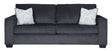 Corner-blocked frame;Attached back and loose seat cushions;High-resiliency foam cushions wrapped in thick poly fiber;2 decorative pillows included;Pillows with soft polyfill;Polyester upholstery and pillows;Exposed feet with faux wood finish;Platform foundation system resists sagging 3x better than spring system after 20,000 testing cycles by providing more even support;Smooth platform foundation maintains tight, wrinkle-free look without dips or sags that can occur over time with sinuous spring foundations
