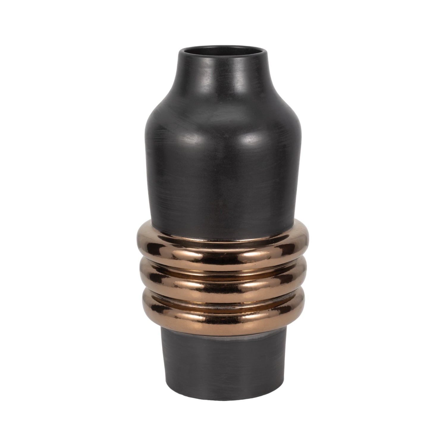 19" Calorin Oversized Tribal Vase, Black/Gold
