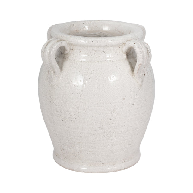 مزهرية تيراكوتا بمقابض مقاس 9 بوصات، فرقعة بيضاء