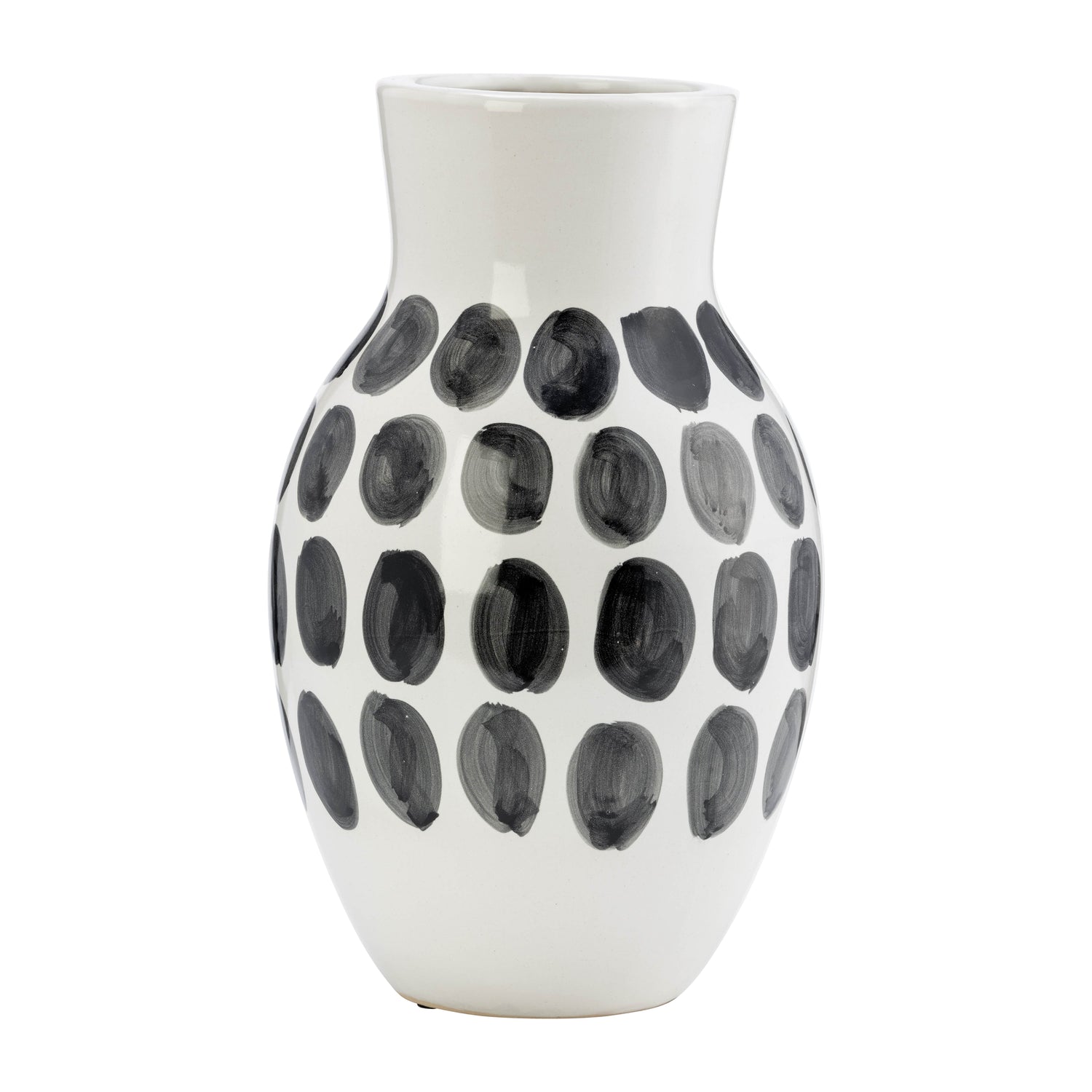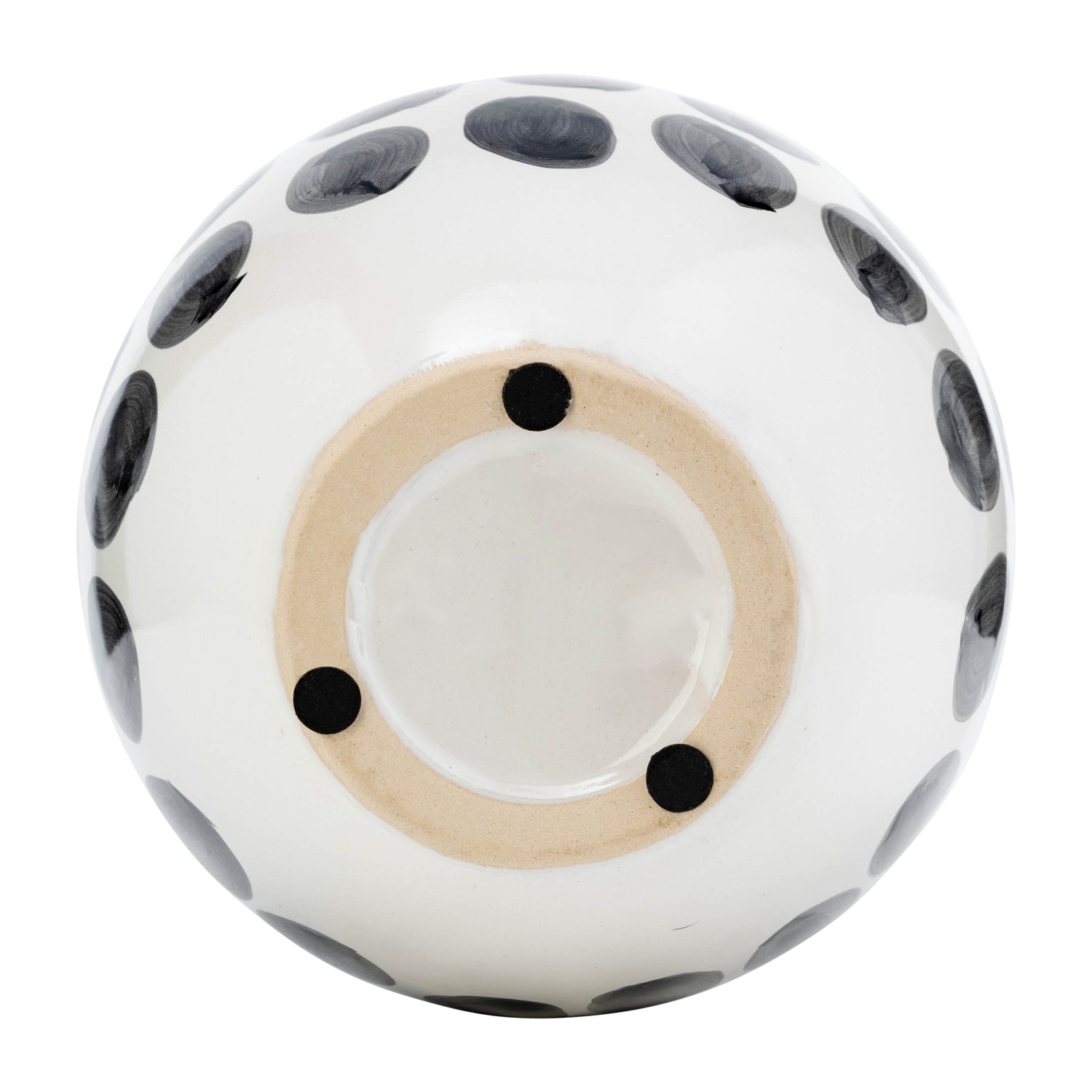 CER, 10"H BLK POLK-A-DOT FLOWER VASE, WHITE