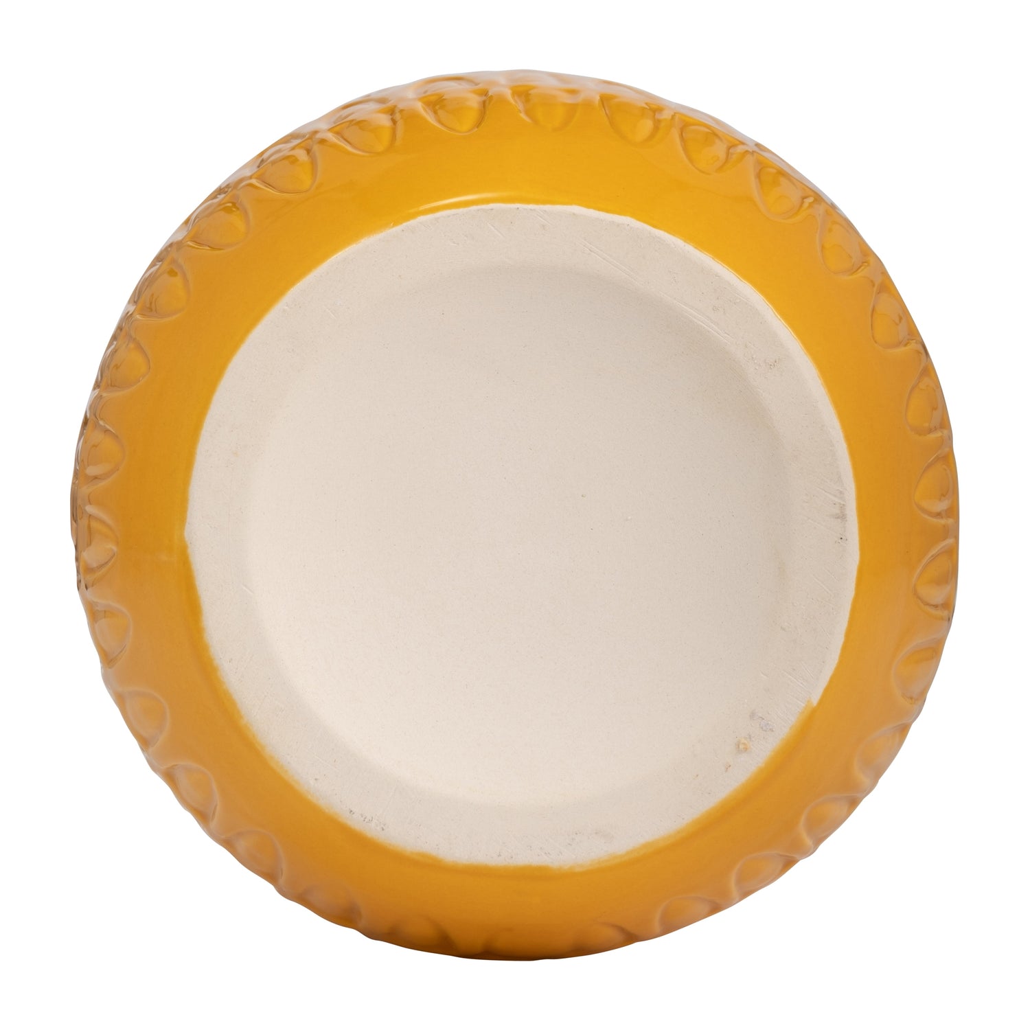 CER, 10"H CARVED VASE, MUSTARD GOLD