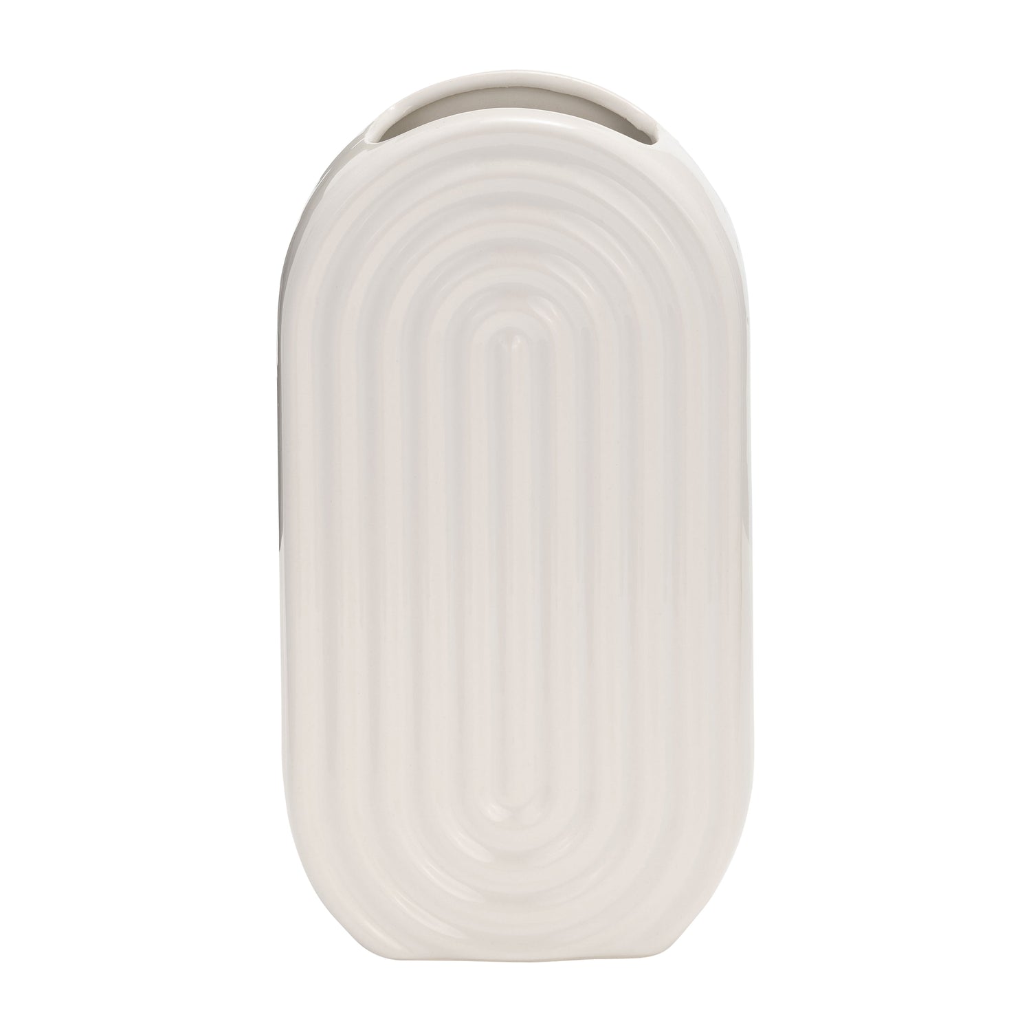 Cer, 11" Oval Ridged Vase, White