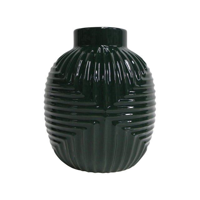 CER, 11" TRIBAL VASE, FOREST GREEN